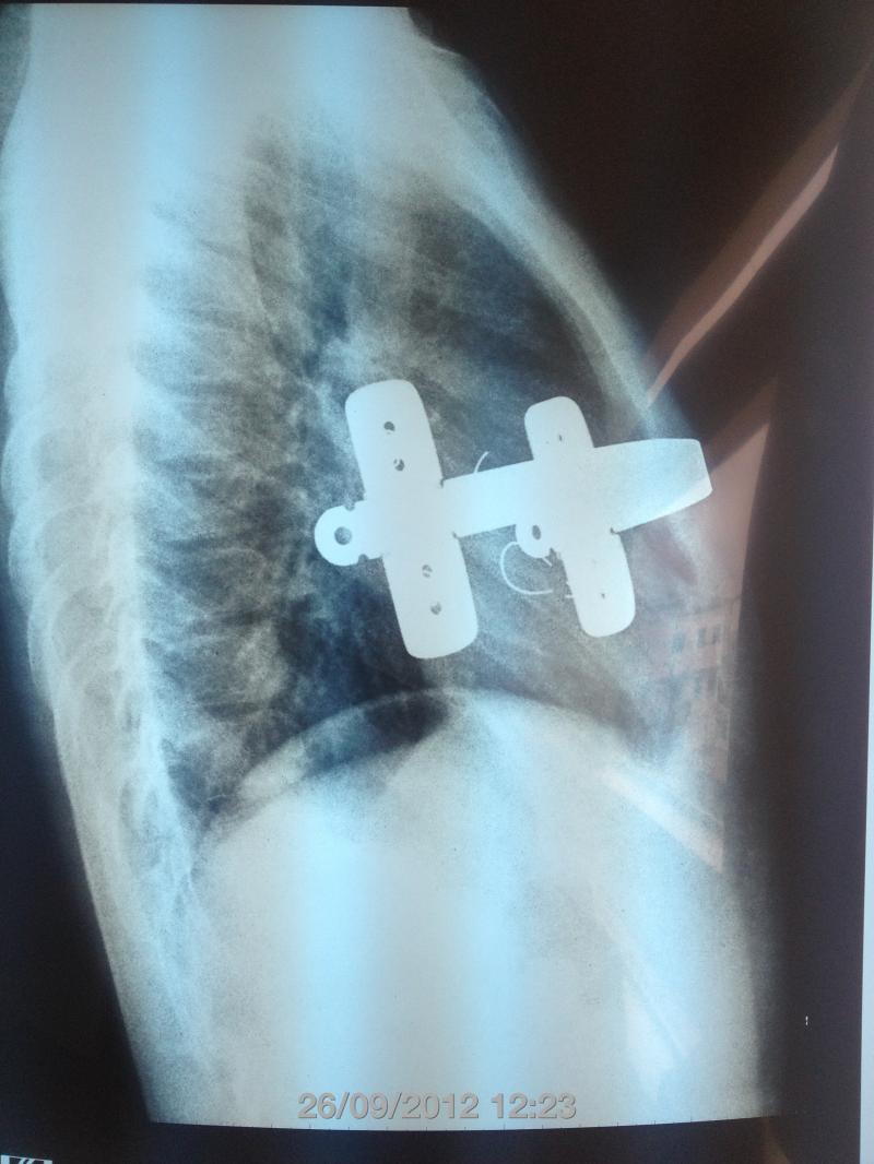 Barra colocada a la Abramson, para corrección de PECTUS CARINATUM LATERAL.
