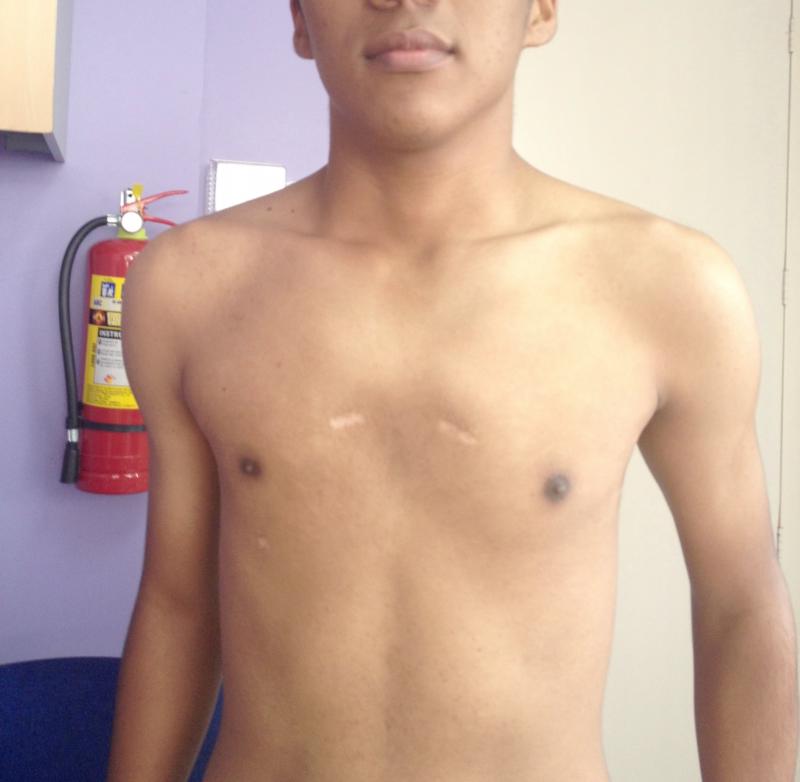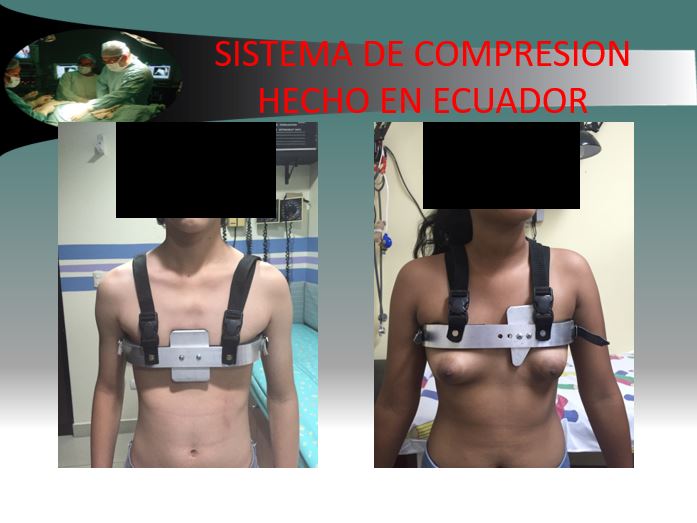 Se realizó corrección quirúrgica. Condrectomia bilateral desde segundo cartilago costal hacia abajo. Operacion de Welch-Ravitch.