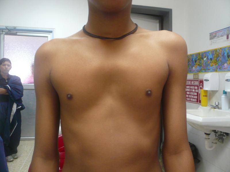 Lo que tenemos es un Esternón corto y ancho, cuyos nucleos de crecimiento se osificaron y fusionaron tempranamente, dando lugar a la deformidad descrita.